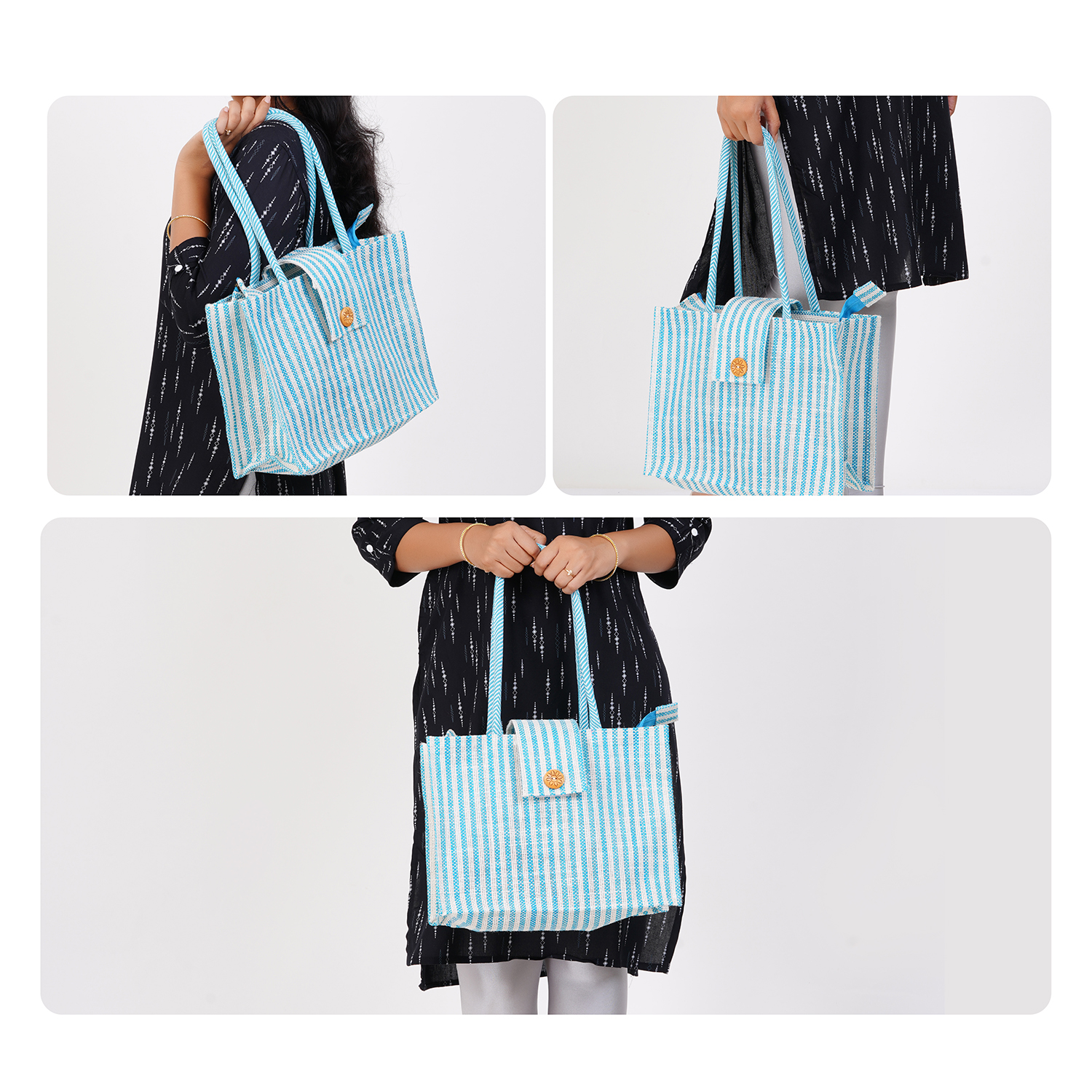 Be the first to review “Jute Long handle Daily carry bag – SkyBlue”